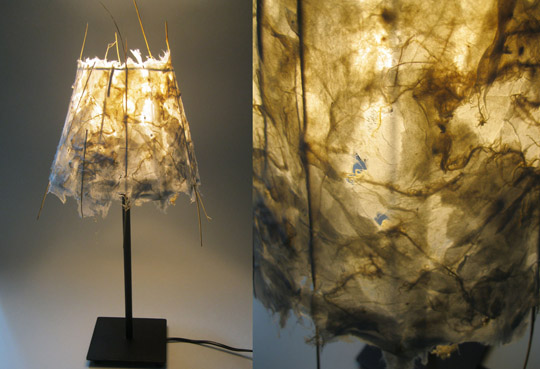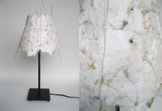 Many of the artdesigns are made out of handmade paper, with inclusions. These lamps, paperbowls and other items have a natural character and sometimes combine the look of vulnerability with toughness. They are meant as decoration.
